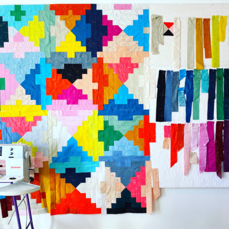 The design is based on the traditional Courthouse Steps block with the addition of a quirky quarter square triangle centre. Easily sized up or down, this simple quilt design packs a punch in solids or dig into your scrap bin for a vintage look.