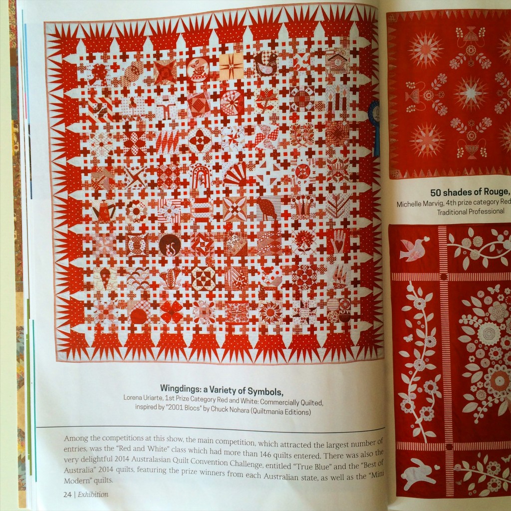 Oops, it’s only when I saw my quilt in Quiltmania this week that I realised a massive oversight on my part. Seems I forgot to write about my most exciting quilty event of the year! The Quilters’ Guild of NSW’s annual Sydney Quilt Show, a member’s show with over 400 quilts in various categories and displays was on 17-21 June. It’s now months ago but it’s probably a good idea to document the event, especially since I won something and so did many of my friends.